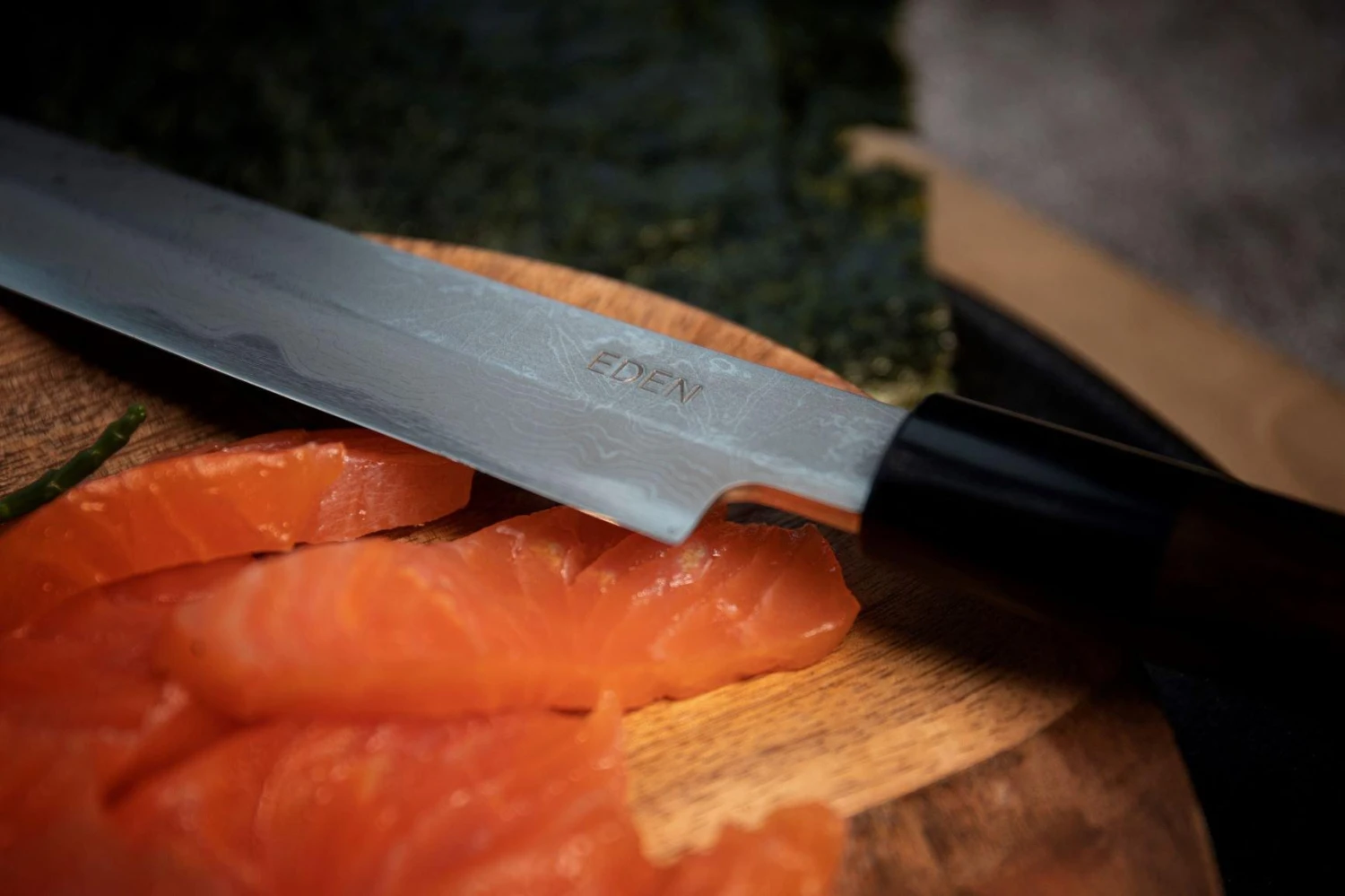 L’Eden Takobiki Ryoba 24 cm est une impressionnante épée de samouraï pour votre cuisine. Avec une longeur de lame de 24 cm, tranchez les plus fins sashimis d’un mouvement souple !