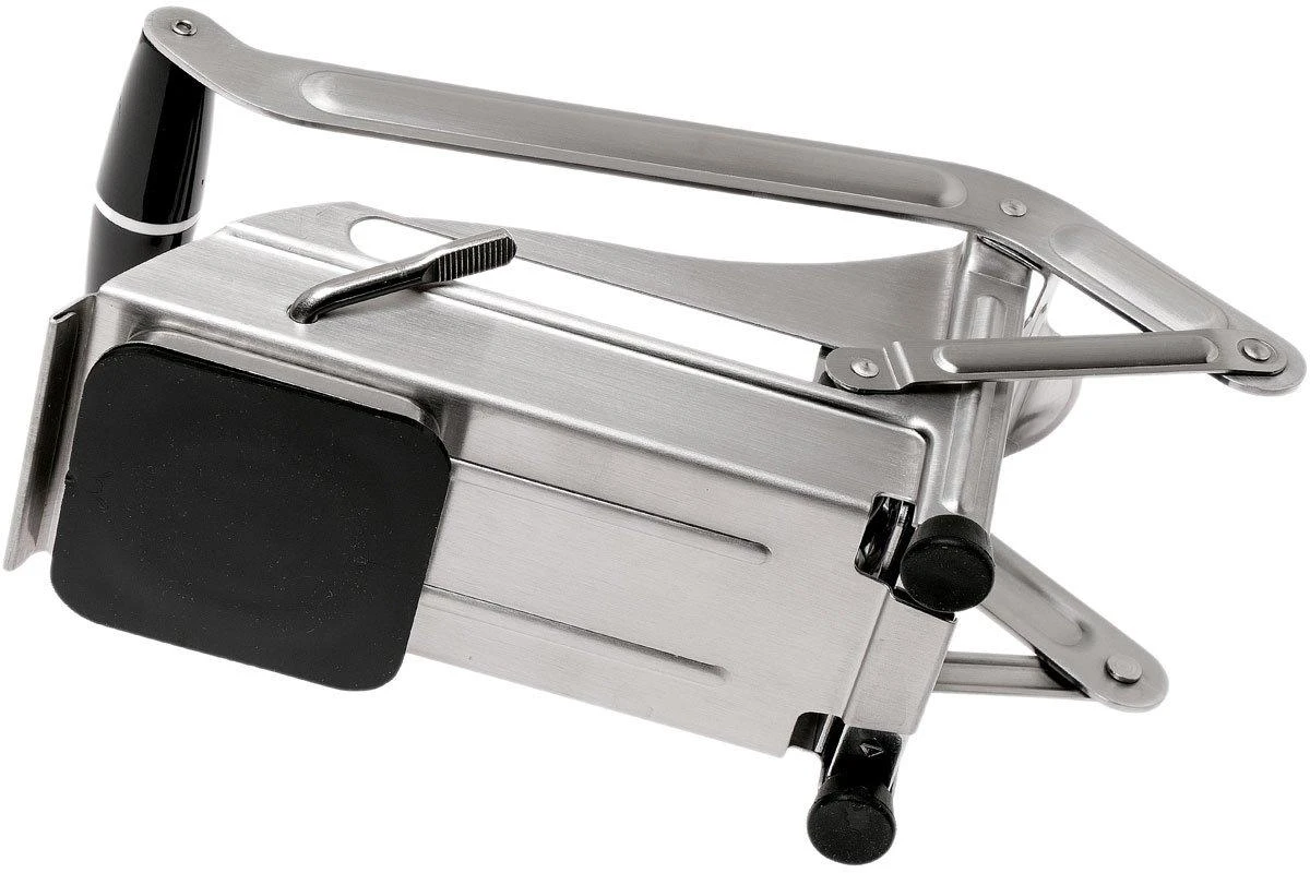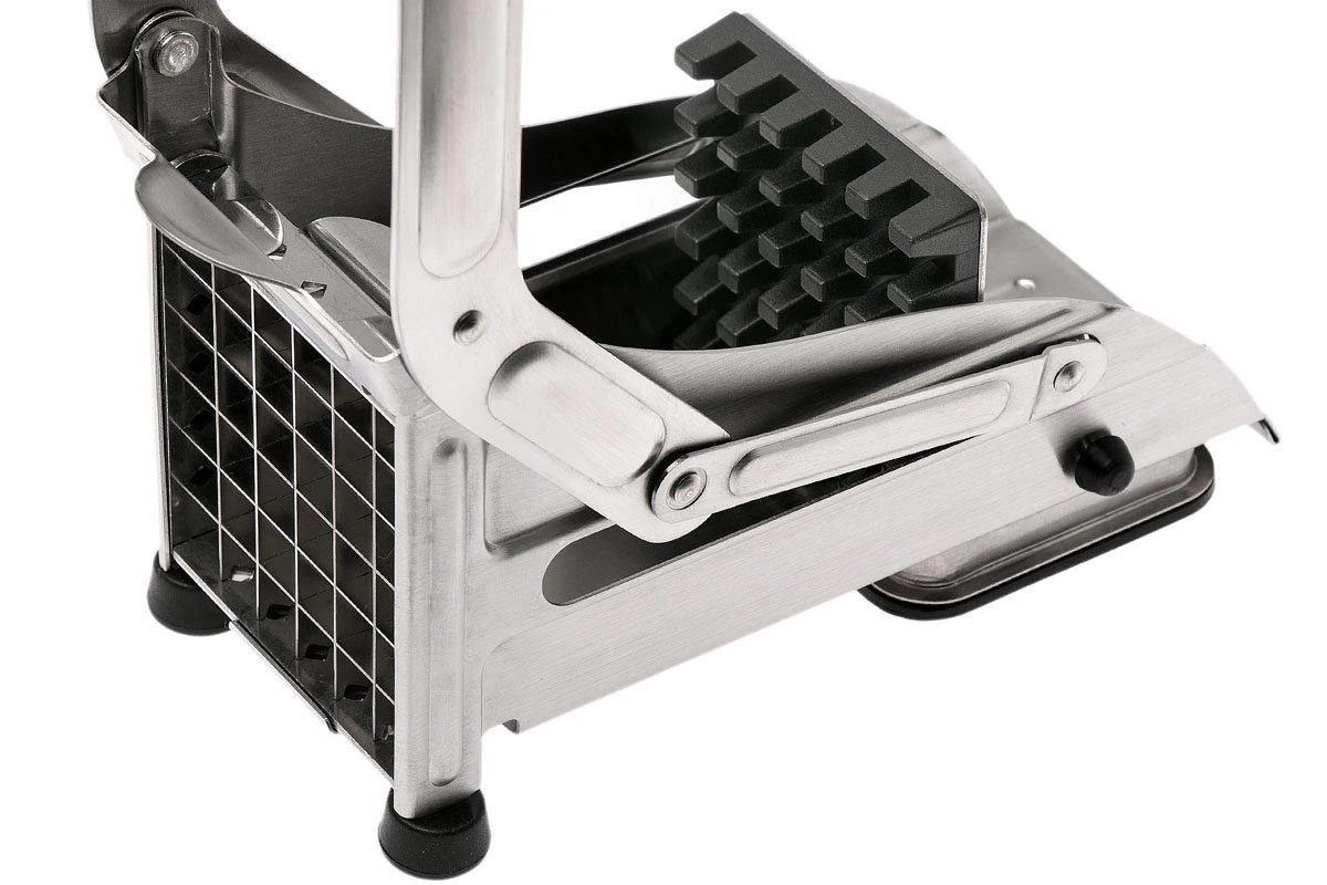 Avec le GEFU coupe-frites, vous réalisez des frites de 12 x 12 mm parfaites. On coupe facilement des pommes de terre, mais aussi d’autres légumes comme les carottes et concombres; Avec sa puissante ventouse, le coupe-frites tient bien en place sur le plan de travail de la cuisine. Nous vous conseillons tout de même de tenir le coupe-frites lors de l’utilisation. Les lames tranchantes permettent d’obtenir des frites de 12 x 12 mm d’épaisseur. La longueur maximale possible entre le bouton poussoir et la grille de découpe est de 9 centimètres. Le bouton poussoir et la grille de découpe peuvent se démonter, pour un nettoyage plus facile. Tous les éléments peuvent aller au lave-vaisselle.