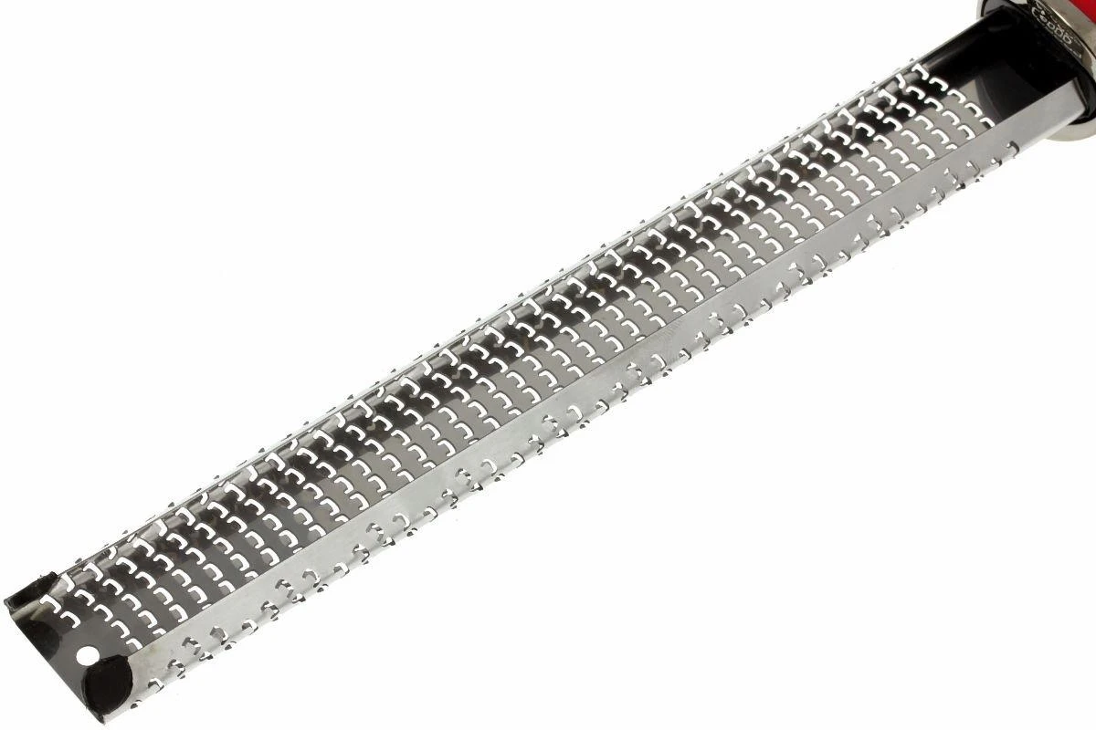 La râpe Microplane Premium Classic est un accessoire fin, pratique et très durable pour votre cuisine. Elle est faite d’acier inoxydable solide et est dotée d’un étui de protection. Cette râpe Premium est dotée d’un manche au toucher doux, offrant une excellente prise en main. Elle est également équipée de deux pieds en caoutchouc antidérapant. Très pratique lorsque l’on râpe un aliment à plat sur le plan de travail.