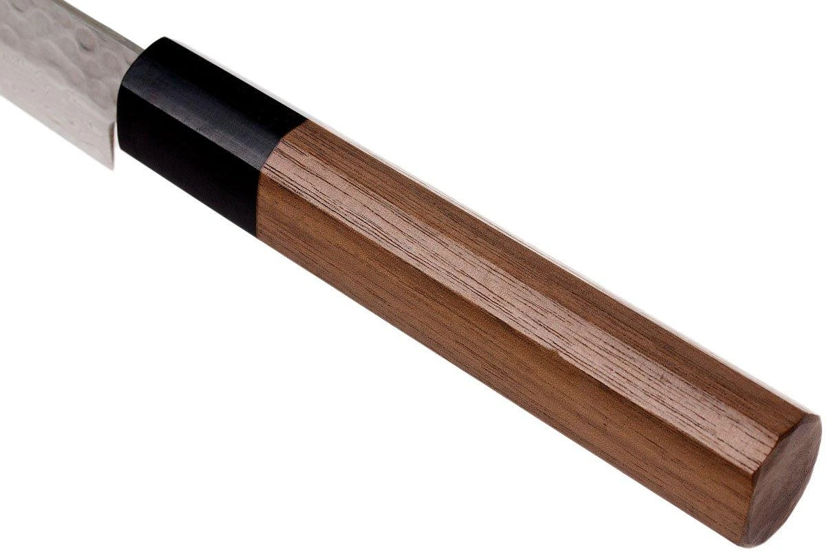 Le couteau d’office de la collection 45-Layer Damascus WA de Sakai Takayuki. Ce couteau, également appelé « petty », arbore une lame de 15 cm et s’avère super pratique pour les petites tâches de coupe.