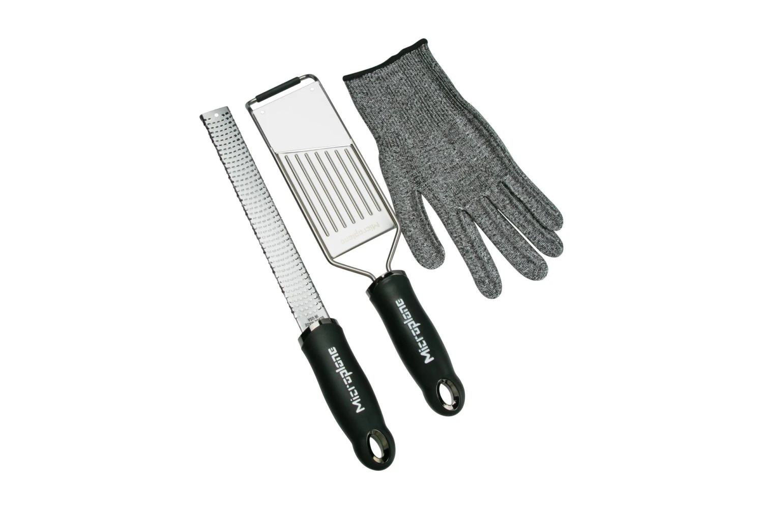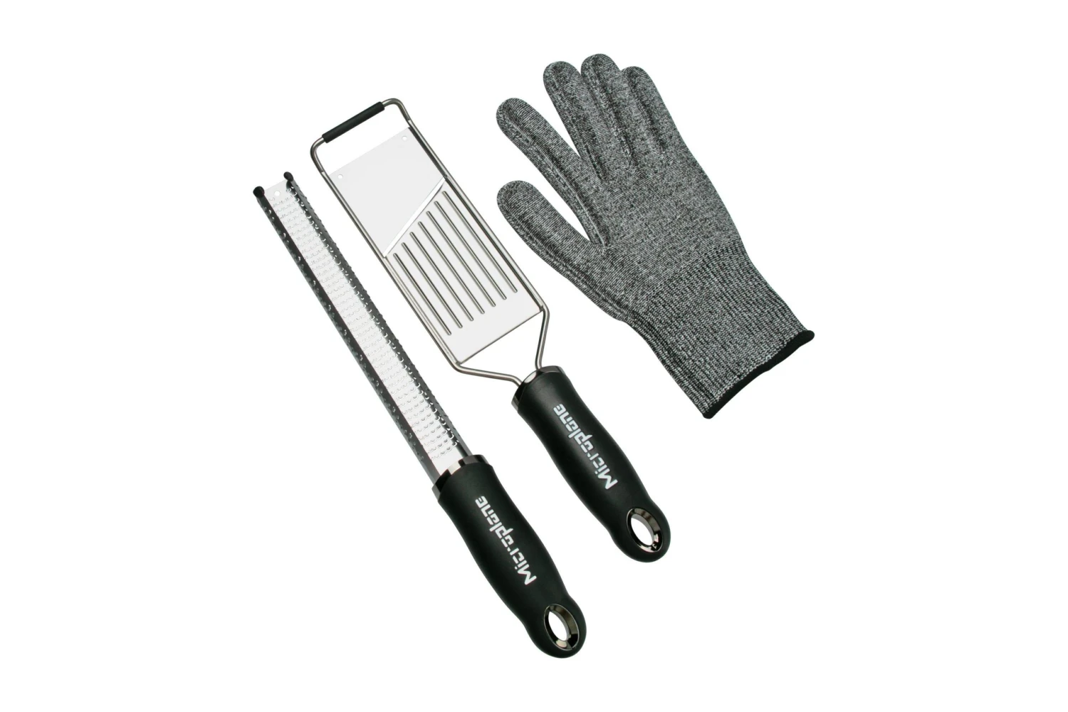 Ce set Microplane se compose d’une râpe Premium Classic, d’une mandoline Gourmet et d’un gant de protection. Ce set est livré dans un superbe coffret cadeau.