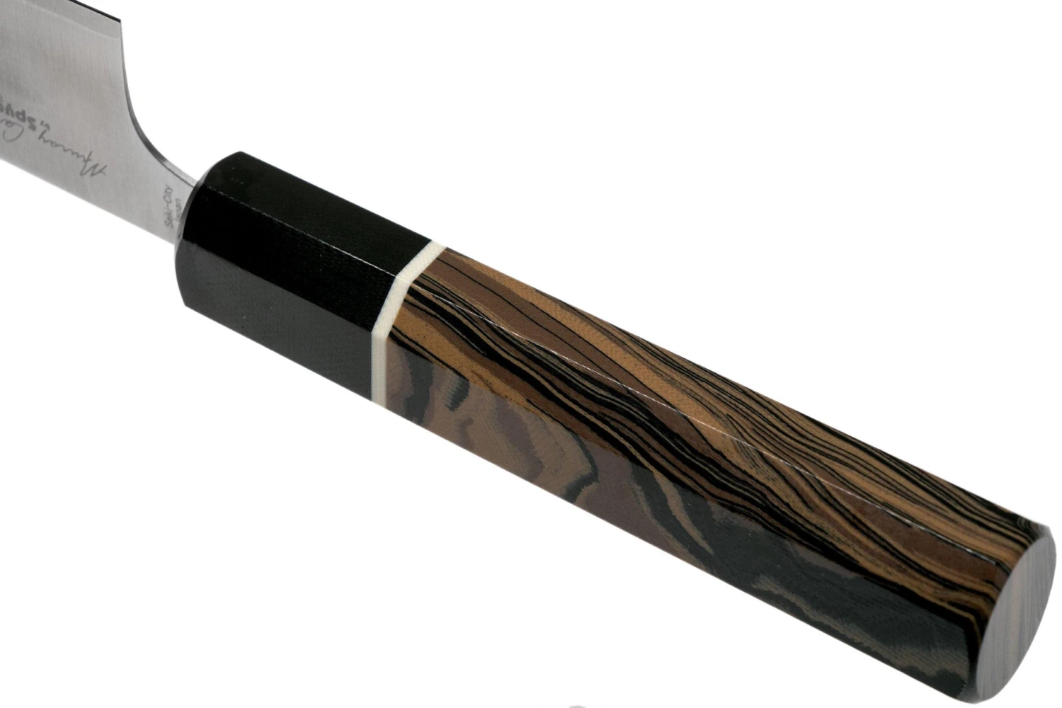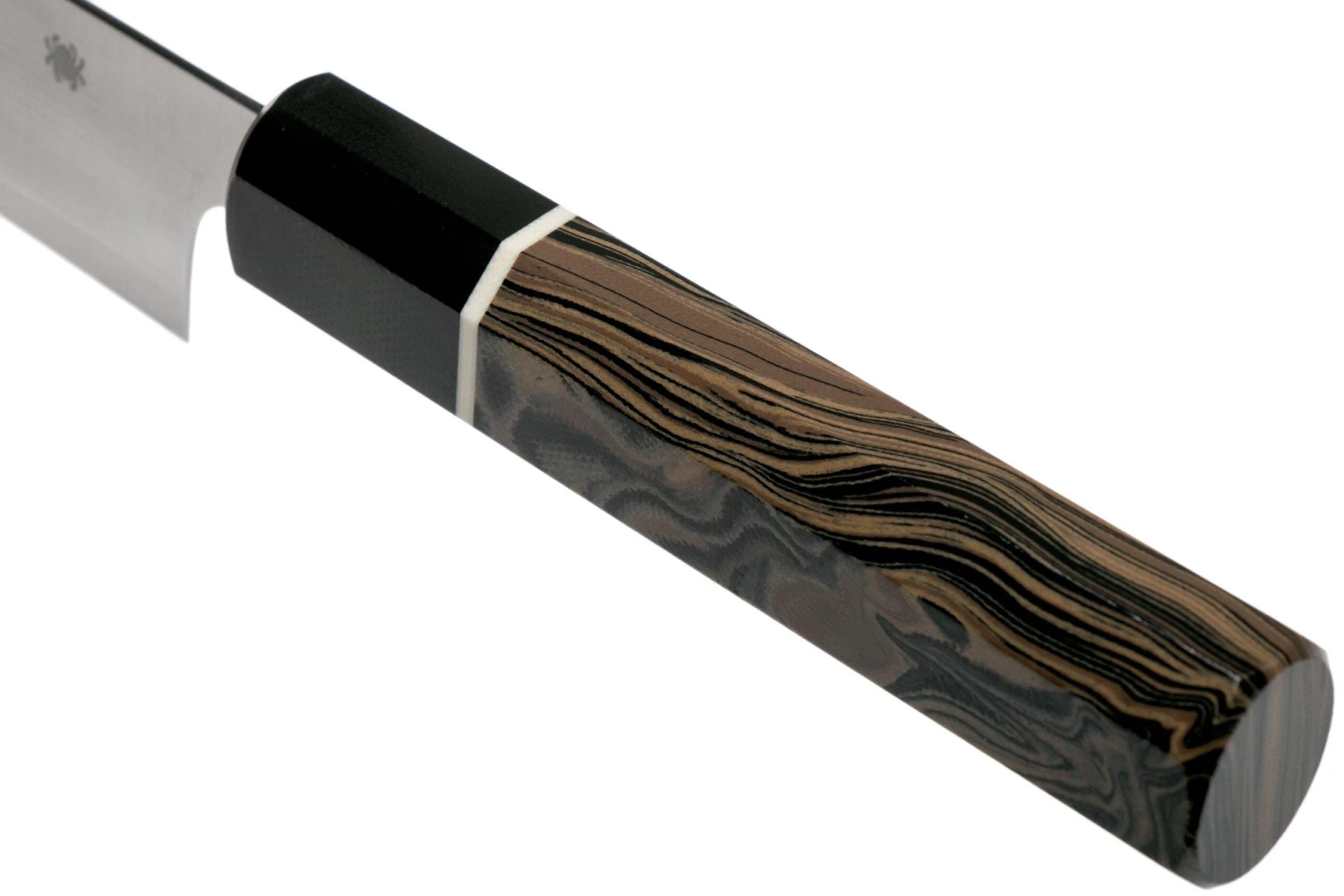 Le Spyderco Funayuki de la gamme Murray Carter Collection est tout simplement superbe. Ce couteau est extrêmement populaire chez les pêcheurs. Il permet de couper le poisson très finement mais aussi la viande et les légumes.