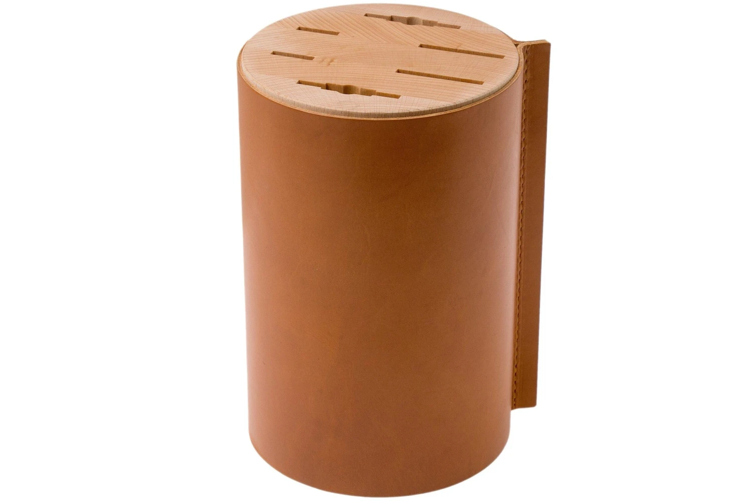 Ce bloc à couteaux Wüsthof Amici arbore un design unique. Il attire le regard. Le bloc est en bois d’olivier entouré de cuir italien. Il peut accueillir 6 couteaux de cuisine. À garnir, par exemple, avec les superbes couteaux de cuisine de la collection Amici ! La forme de la fente permet éventuellement d’y ranger un fusil d’affûtage (1,3 cm de diamètre maximum) ou un couteau à trancher la viande (3 centimètres de largeur maximum).