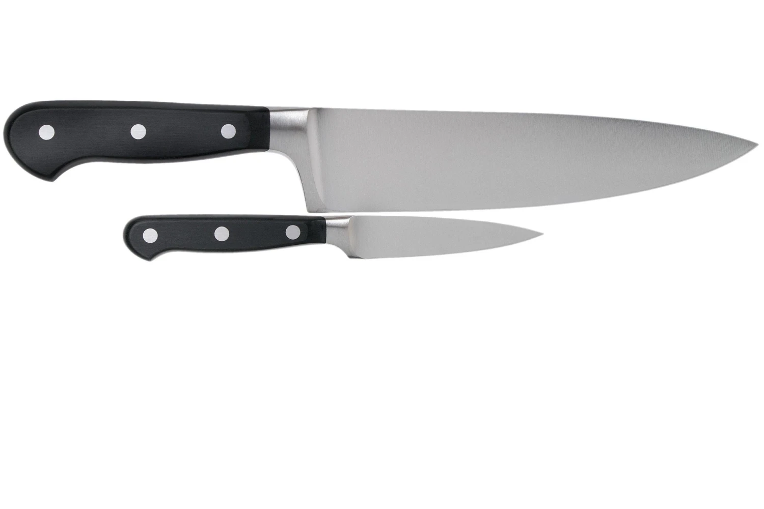 Ce ** set de couteaux 2 pièces Wüsthof Classic ** est un set avantageux pour s’initier au plaisir de couper avec des couteaux de qualité ! Le couteau de chef peut être utilisé pour toutes les principales tâches en cuisine et le couteau d’office, pour les plus petites missions.