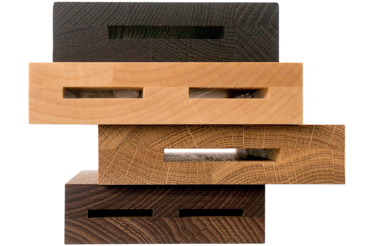 Ce bloc à couteaux Wüsthof Crafter va à merveille avec le style des couteaux de cuisine Crafter. Ce bloc peut accueillir 4 grands couteaux et 2 petits. On peut y ranger par exemple :